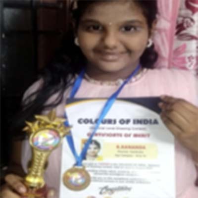 S. Sananda 5L participated in the prestigious national drawing competition, "Colours of India," recognized by the JACKIE BOOK OF WORLD RECORDS. Sananda excelled remarkably and was crowned the TOPPER in the 10 to 12 years age category.