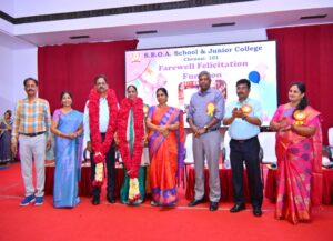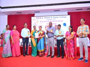 The Farewell Felicitation Function was held on 23rd December 2025, at the school premises to honour our beloved Principal Mrs. Sharadha Ramamurthy. The event was graced by Dr. P. Nithish Andreyya Raja Singh (President), Shri. S. Prakash (Treasurer), Shri. A. Senthil Ramesh (Secretary & Correspondent, S.B.I.O.A. Educational Trust), Mrs. Priya Chandra Prakash (PTA President, SBOA JC), Mr. V. V. Anand, and Mr. D. Ravikumar (Administrators, S.B.I.O.A. Educational Trust).