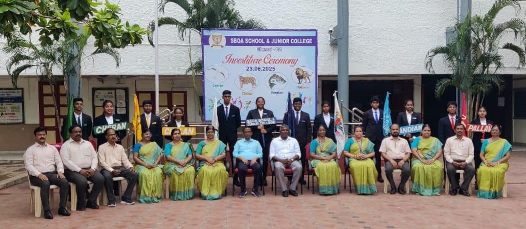 – The solemn ceremony of the investiture was held on 23.06.2025. The Secretary and Correspondent, Shri. A. Senthil Ramesh honoured the Students Council by pinning the badges. Shri. Gurunathan K., S.B.I.O.A. Sr. Sec. School Trichy – Correspondent, graced the occasion with her valuable presence.